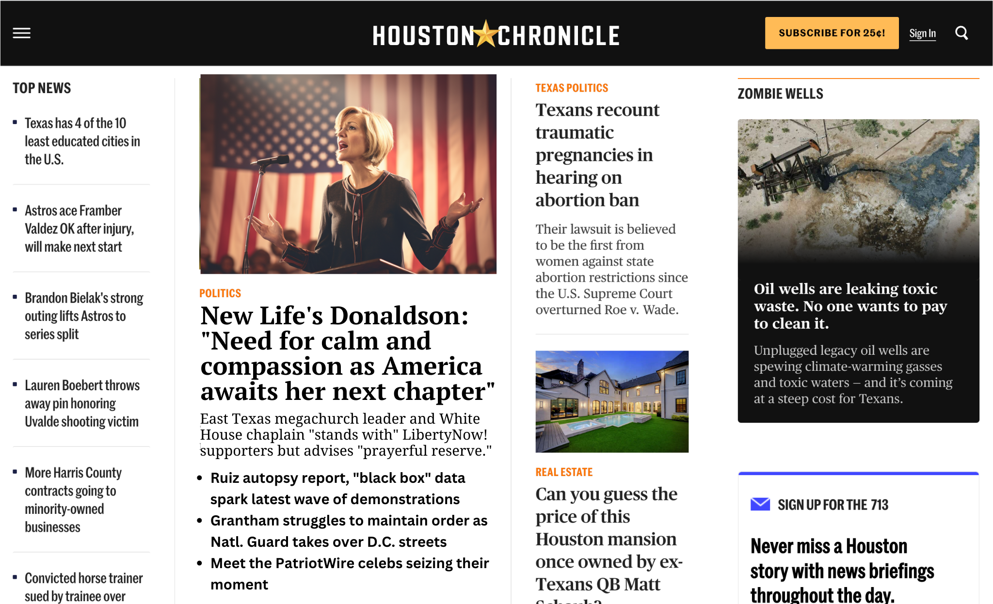 The scuttlebutt here in Turner Falls is surprisingly tempered on the conspiracy front, maybe because locals are especially devoted to the aforementioned Kathy “Pastor K” Donaldson, who dedicated a half-hour of her daily PatriotWire/YouTube broadcast on Monday to echoing President Grantham’s (still feels weird typing that out!) calls for calm. The phrases from her online sermon that the pundits are trying hardest to parse seem to be “America’s next chapter” and “prayerful reserve,” which some suspect is an indication that Donaldson has a big announcement coming soon. (I’d be wary of this — supposedly “big” announcements that turn out to be nothingburgers is pretty much the whole M.O. of the PatriotWire crowd.) The Houston Chronicle picked up on both: