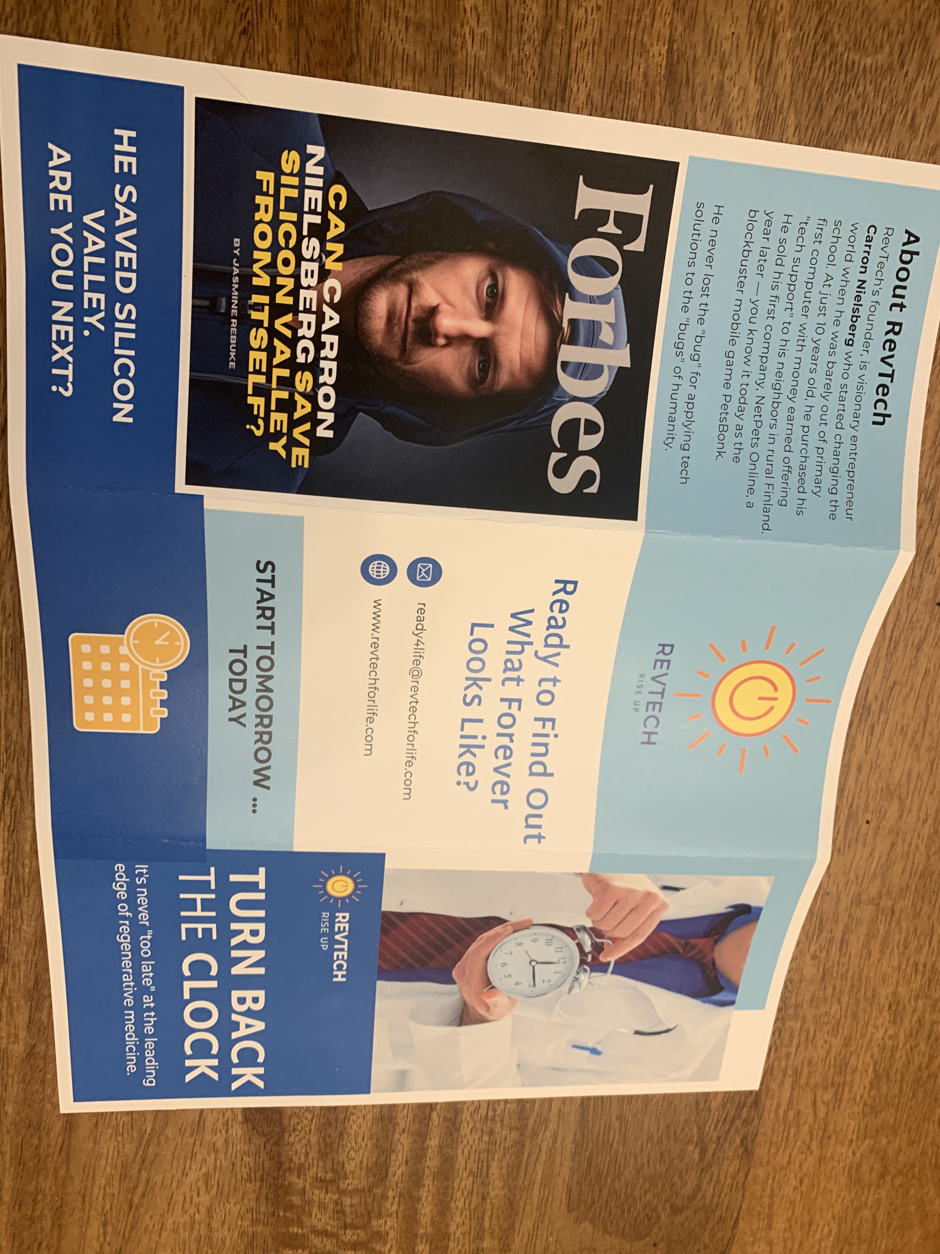 The pamphlets are identical. And they also explain why Linda Lyle said she decided to give me a call about her RevTech concerns: my Forbes cover profile of Nielsberg figures prominently on a back fold.