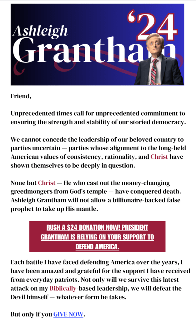 As VP, Grantham was sworn into the presidency following the plane crash that (originally?) killed Ruiz in the early hours of July 5th, and famously did not attend Ruiz’s funeral, citing his “urgent duty to maintain order.” The 94-year-old Grantham then became the oldest-ever presidential candidate just a few weeks later when he announced his intent to run for election-proper in 2024. He’s reportedly preparing to put up a 25th Amendment fight against Ruiz returning to the White House, asserting that whether Ruiz is for real or he’s a crackpot imposter who figured out how to bury an empty coffin after a presidential funeral extravaganza, he’s unfit to serve as the leader of the ostensibly free world. In an interview with The Hill on Monday, Grantham made the declaration that he’ll relinquish the presidency “over my dead body, not Rudy Ruiz’s,” which, if you think about it (and I have to), only serves to muddle the question.